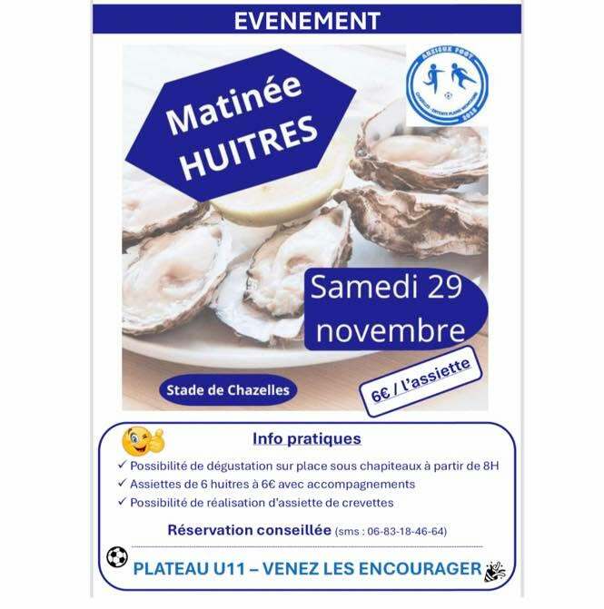 Nouvelle journée conviviale organisée le 29 novembre au stade de Chazelles. Venez nombreux on compte sur vous !