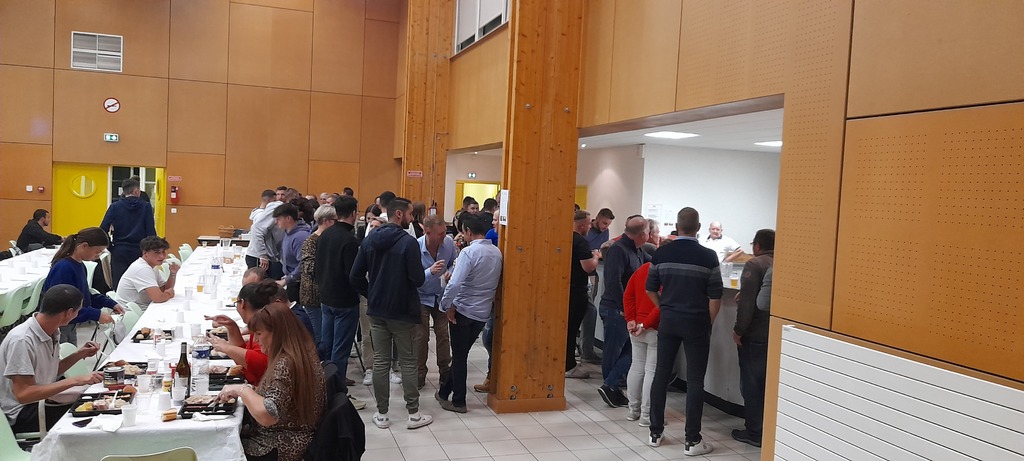 Aprės 3 ans d'absence, la soirée familiale est enfin revenue au progamme des manifestations du club. Ce samedi, la soirée a été réussie grâce à la prestation de nos DJ Rythm'Animation, l'excellente choucroute de Venet & Charbonnier, l'humeur festive de nos seniors, coachs et parents et surtout l'équipe Animation du club
